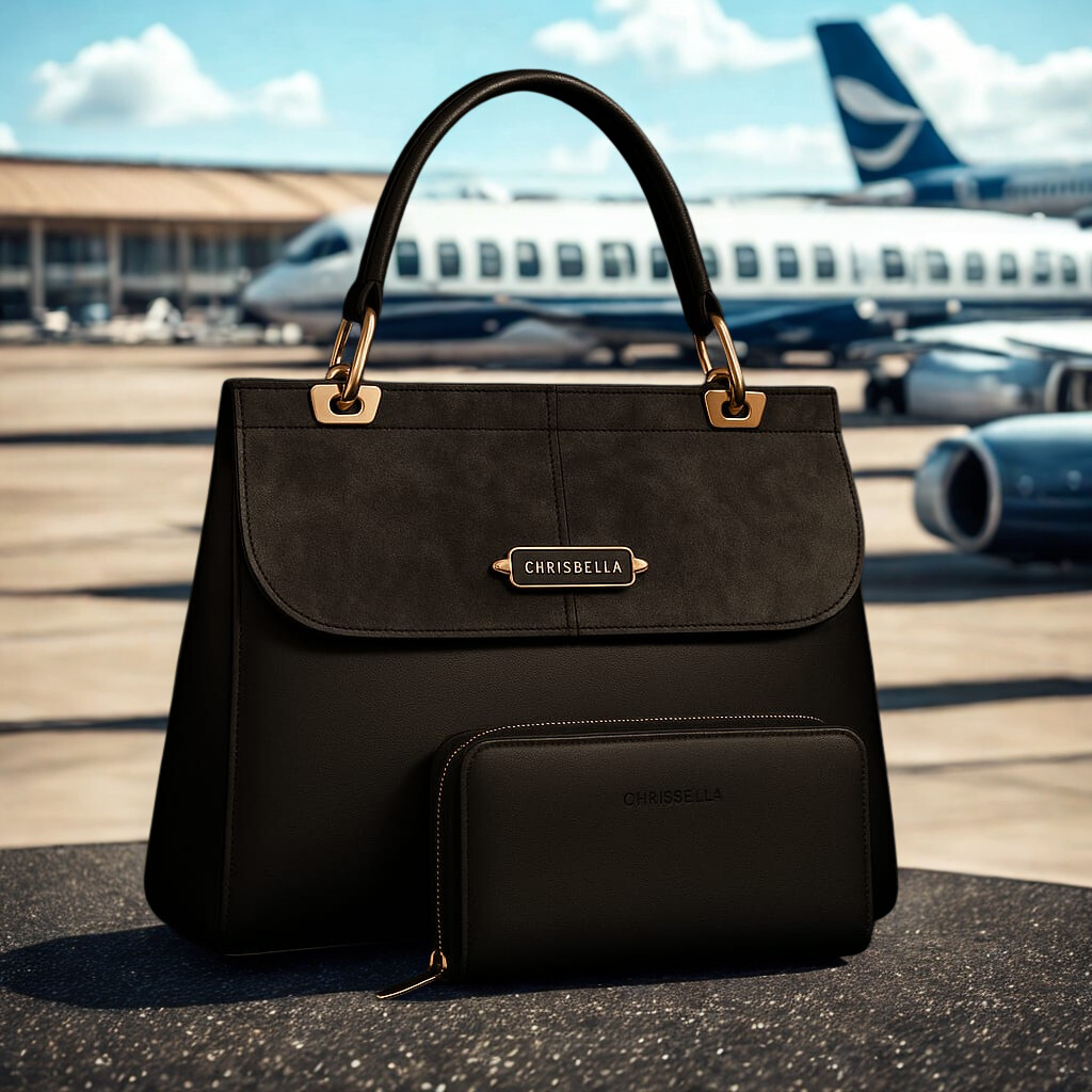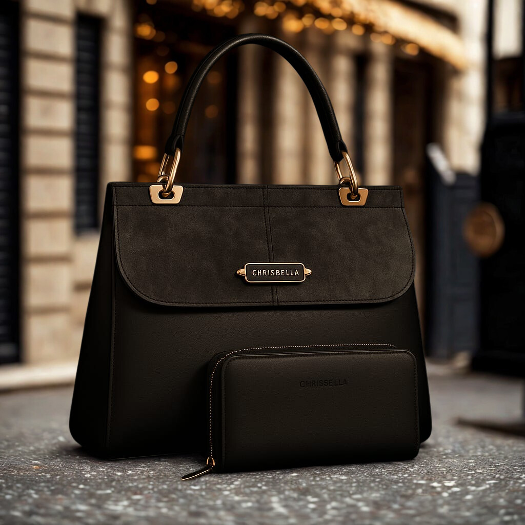 Upgrade your style with the CHRISBELLA Premium Handbag & Matching Wallet Set, crafted for modern women who demand both luxury and practicality. This beautifully structured tote features a sleek, timeless design enhanced with elegant gold-tone hardware and a refined front logo plate that reflects true premium craftsmanship.
